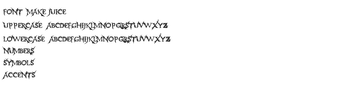 Make Juice to wyrazista czcionka wyświetlająca intensywny i edgy styl, charakteryzująca się ostrymi, poszarpanymi literami, które przypominają cierniowe winorośle lub błyskawice. Jej unikalne akcenty oraz nieregularne kształty nadają surową, niemal buntowniczą energię, co czyni ją idealnym wyborem dla projektów wymagających uwagi i odrobiny mrocznej charyzmy. Rodzina czcionek oferuje różnorodne warianty, od solidnych, gęstych wypełnień po bardziej teksturowane lub konturowe style, co pozwala projektantom na łączenie różnych nastrojów od surowych po nieco bardziej wyrafinowane, ale wciąż dynamiczne.